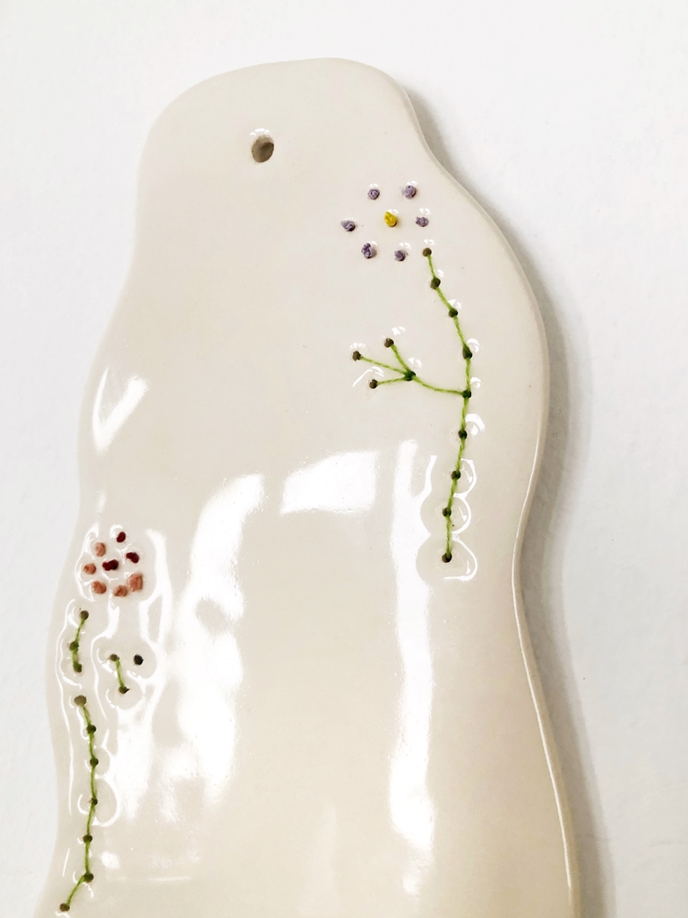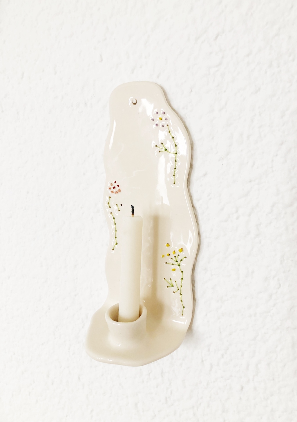 Portavela de cerámica bordado, realizado y esmaltado totalmente a mano.
