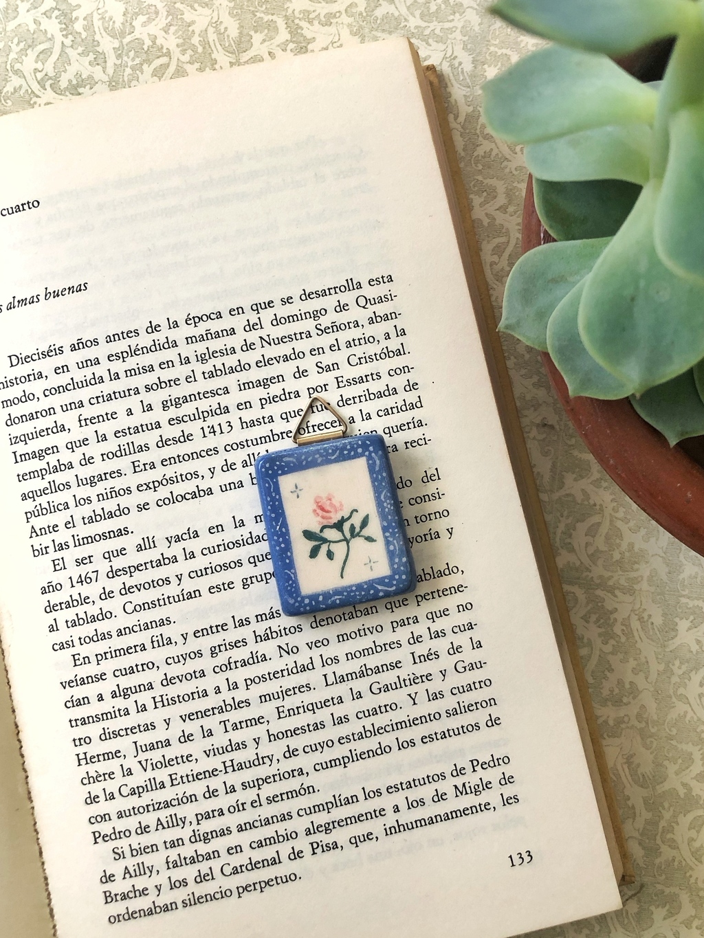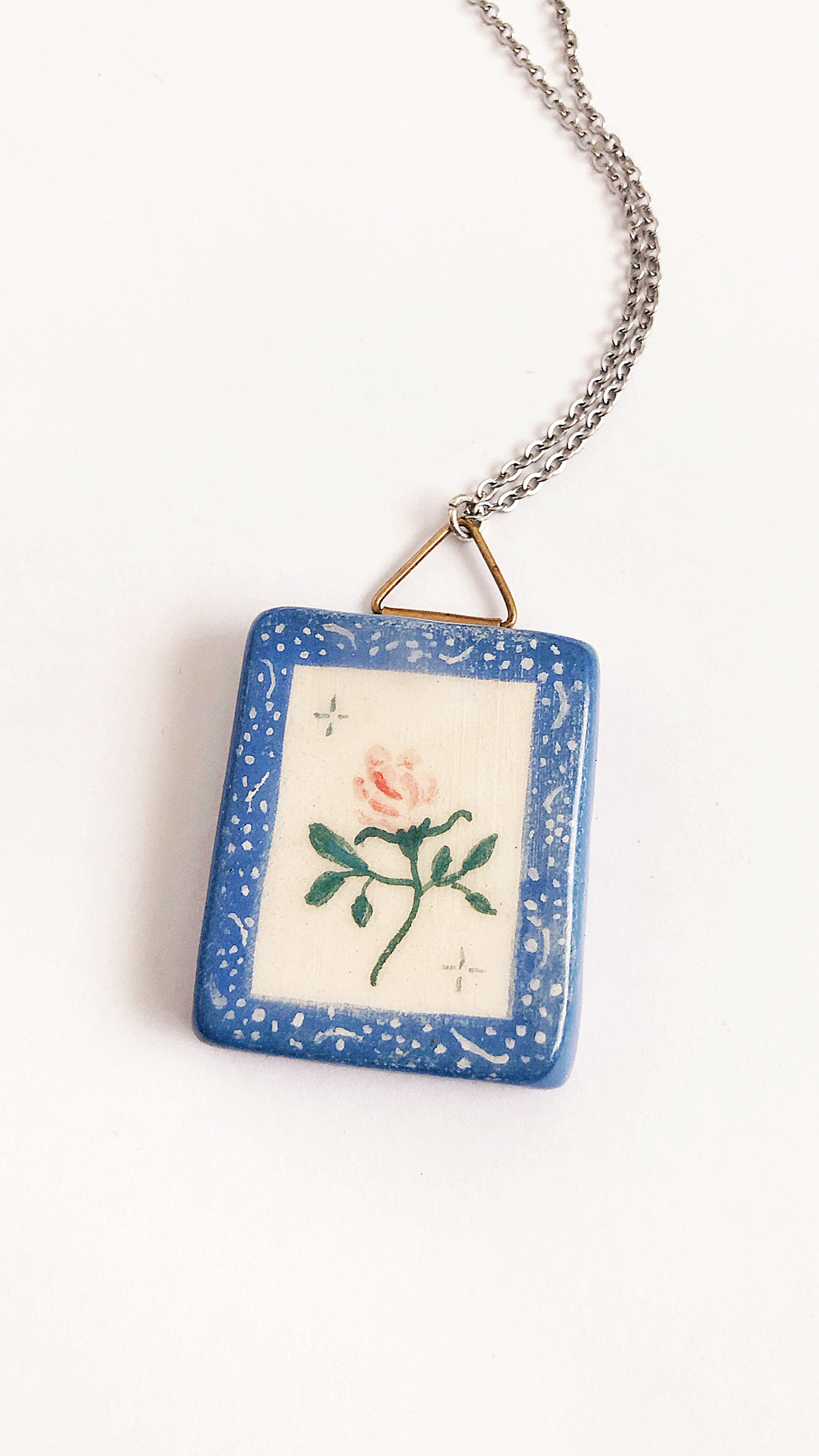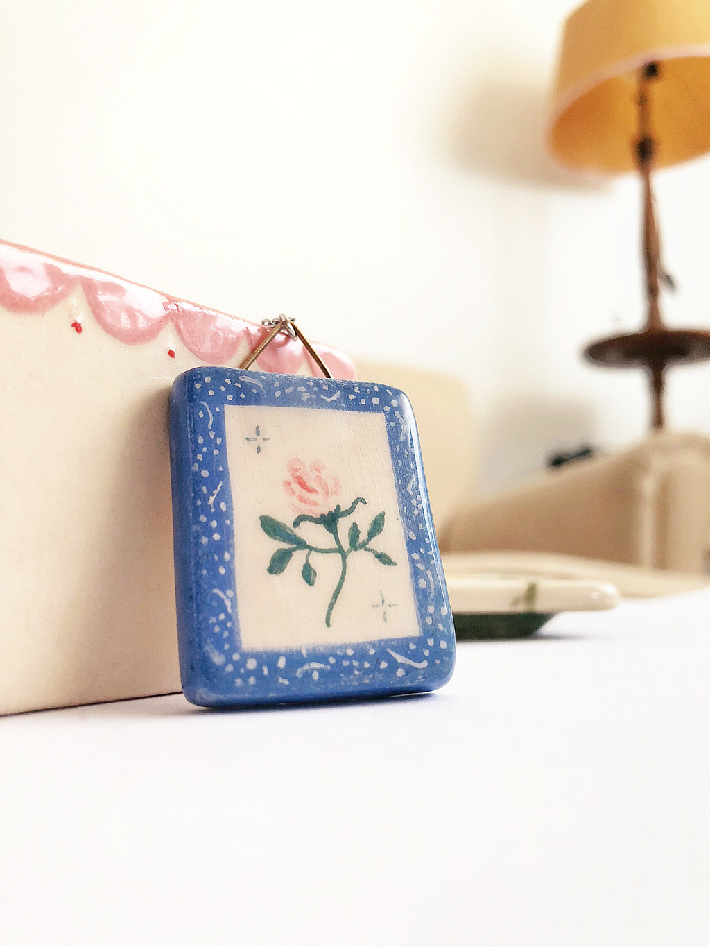 Dije de cerámica realizado, pintado y esmaltado totalmente a mano.