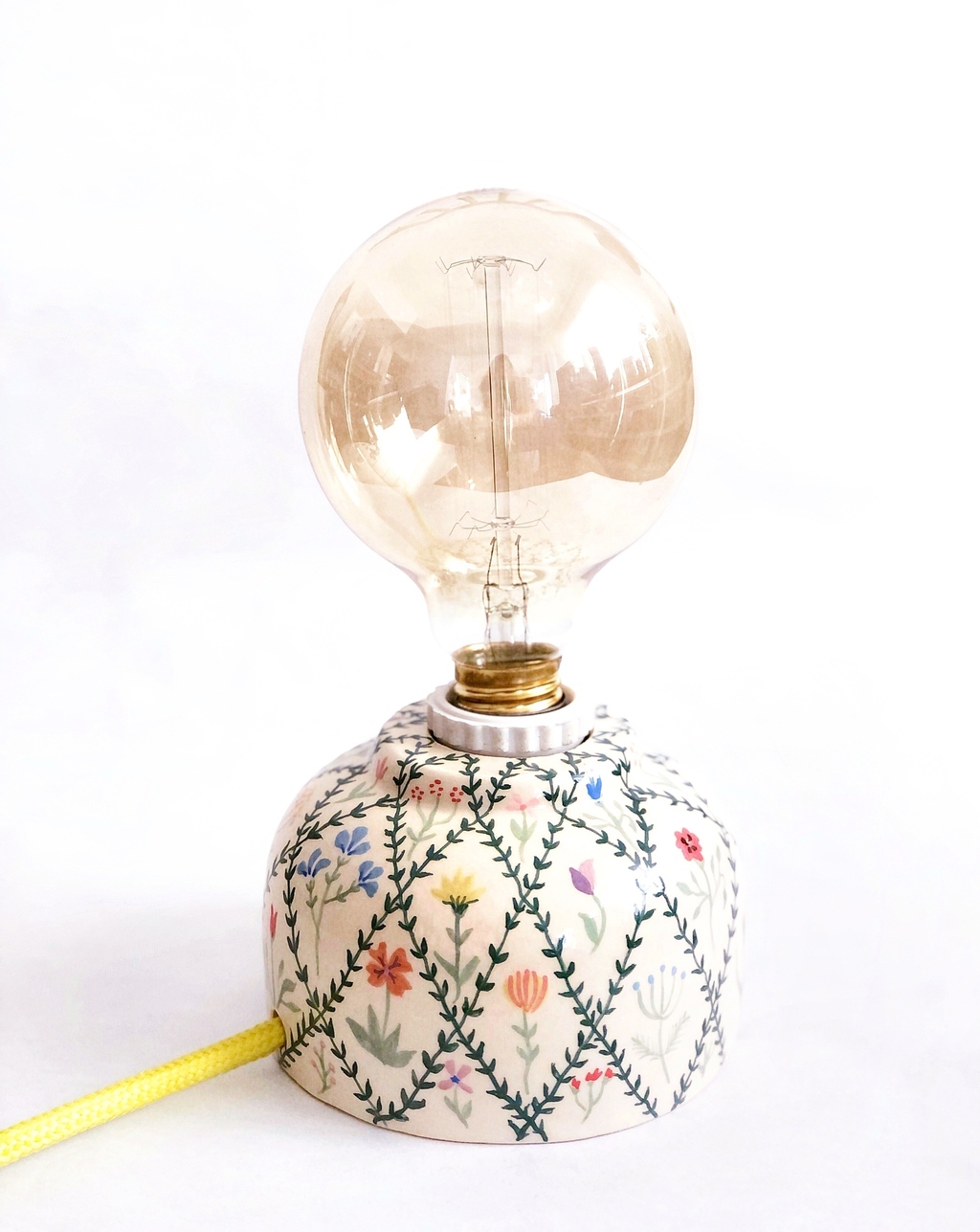 La lámpara fue moldeada a mano y pasó por dos horneadas durante su proceso de realización, que tomó aproximadamente un mes en total.