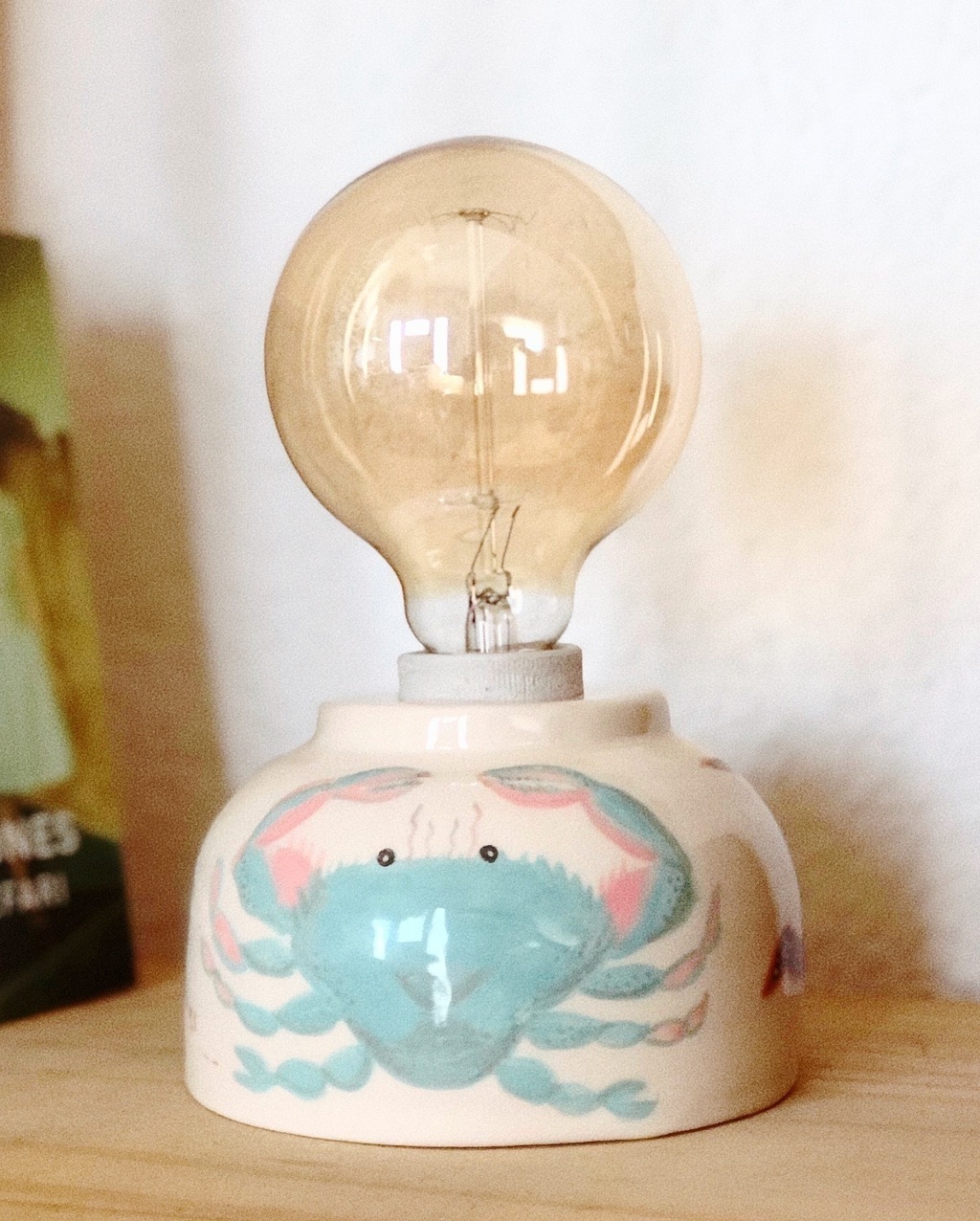 La lámpara fue moldeada y pintada a mano, pasó por dos horneadas durante su proceso de realización, que tomó aproximadamente un mes en total.