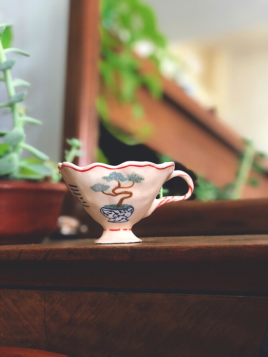 Tacita de cerámica realizada, pintada y esmaltada totalmente a mano.